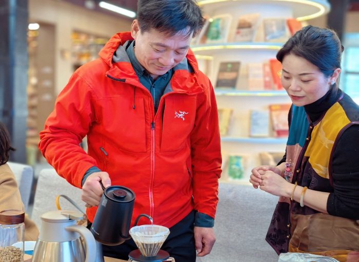 活动开始,由国家级咖啡实训指导师宋喜莲老师详细讲解了三大咖啡产区的品鉴,介绍了一颗咖啡豆的成长历程,随后在咖啡师的演示和指导下,大家开始体验了手冲咖啡制作,从挑选咖啡豆、研磨、到冲泡,真切体验到了制作过程的乐趣,收获了亲手制作的成就感。