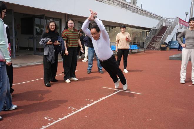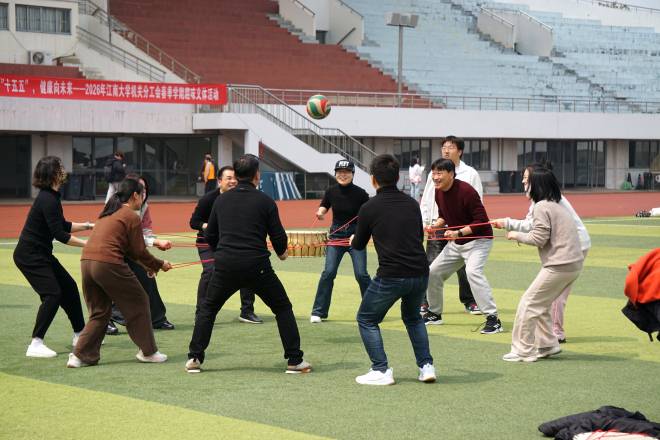 3月25日中午,学校中心体育场及篮球场上欢声笑语、气氛热烈,由机关党委、机关分工会主办的“奋进‘十五五’ 健康向未来”2026年春季学期趣味文体活动在此精彩举行。来自机关各部门的教职工齐聚一堂,在春日暖阳中共享运动乐趣,展现昂扬向上的精神风貌。