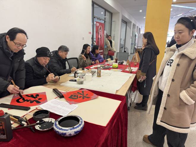 正逢年货节举办之际,校园内充满了节庆所承载的民俗记忆与生活气息,饱含了着人们对新年的期待与祝福。本次书画雅集嵌入其中,使书画创作在节日的烟火气中被更多人感知、参与,让艺术与生活进行更自然、真切的交流。