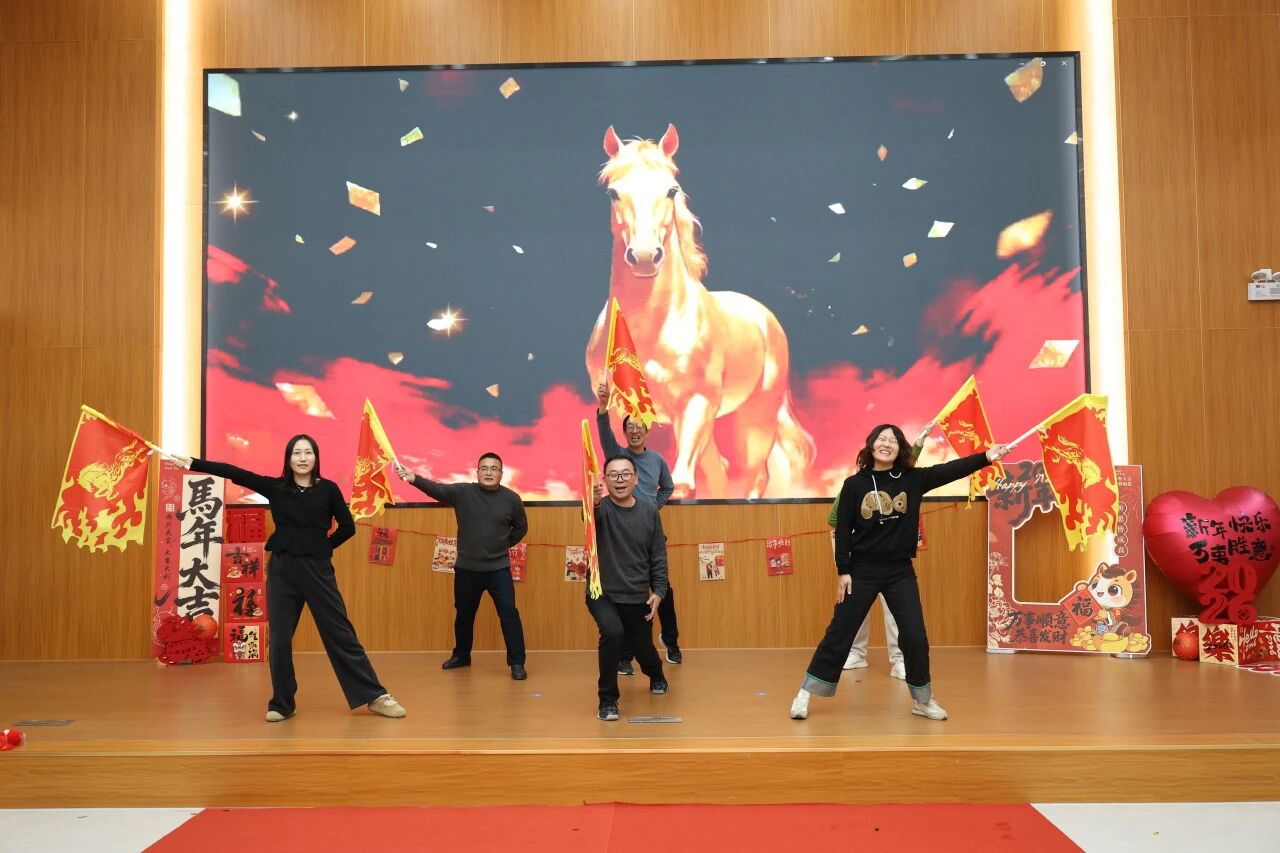 文艺展演精彩连连、亮点纷呈。新入职教师带来《好运来》,以欢快喜庆的旋律传递出真挚的新春祝愿;实验中心合唱《听是谁在唱歌》,温暖动人;贾亦雄老师献唱《你要跳舞吗》,点燃全场热情;学工团队用青春洋溢的舞蹈《爱你》展现无限活力;自动化系老师带来的舞蹈《新年快乐》舞步欢快,烘托出浓厚的节日氛围;歌舞表演《好大一棵树》动情演绎育人故事;孔军老师献唱《鸿雁》,歌声悠远,引人沉醉;压轴节目《万马奔腾》气势磅礴,由院工会老师们联袂呈现,展现出昂扬奋进的精神气象。