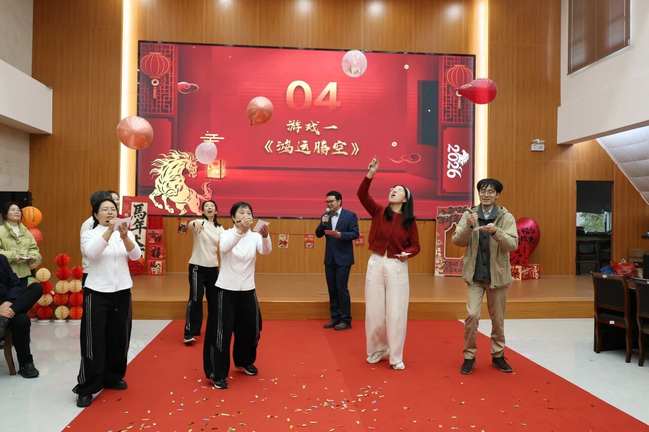 互动环节同样高潮迭起。活动设置“鸿运腾空”“套鹅纳福”“马到成功”“金鸡送福”四项趣味游戏,老师们踊跃参与、默契协作,在欢声笑语中释放活力、增进交流。