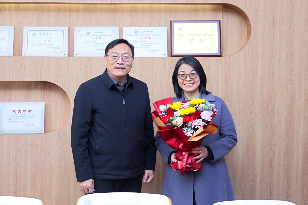 3月5日上午,校党委书记吴正国,校党委常委、工会主席朱飞,本科生院副院长兼教务处处长黄锋林,校工会副处级干部许南惠,校工会副主席王芳等一行走访慰问我院优秀教师代表吴静教授。学院党委书记史志洪陪同走访并参加交流。